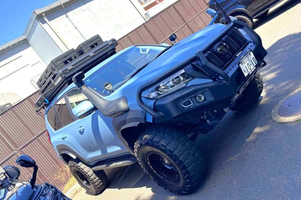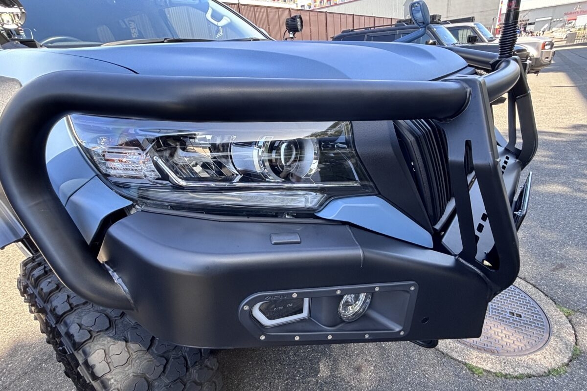 「4WD乗りの聖地と言われている埼玉県坂戸市にある『小峰自動車板金塗装』の社長がカスタムした車両をSNSで見たんです。ラプターライナー塗装といって、表面がゴツゴツ・ザラザラした質感でキズに強く、マットで無骨な塗装がされていました。これを自分のプラドにもお願いしたいと思ったことがキッカケですね」