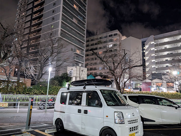 街で飲んだあとは運転せず、そのまま車で眠れる。