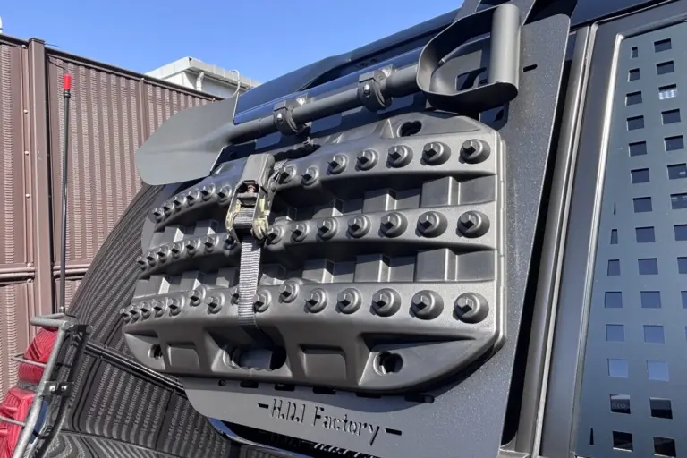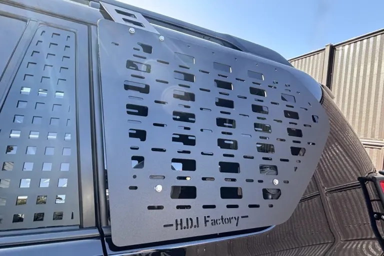 「4WD車で定番の外装パーツは社外バンパーですが、このクルマはあえてエアロパーツを組み込んでいます。後方にはHDIのサイドウィンドラックを付けるなど、オンとオフを適度にバランスさせてみました」