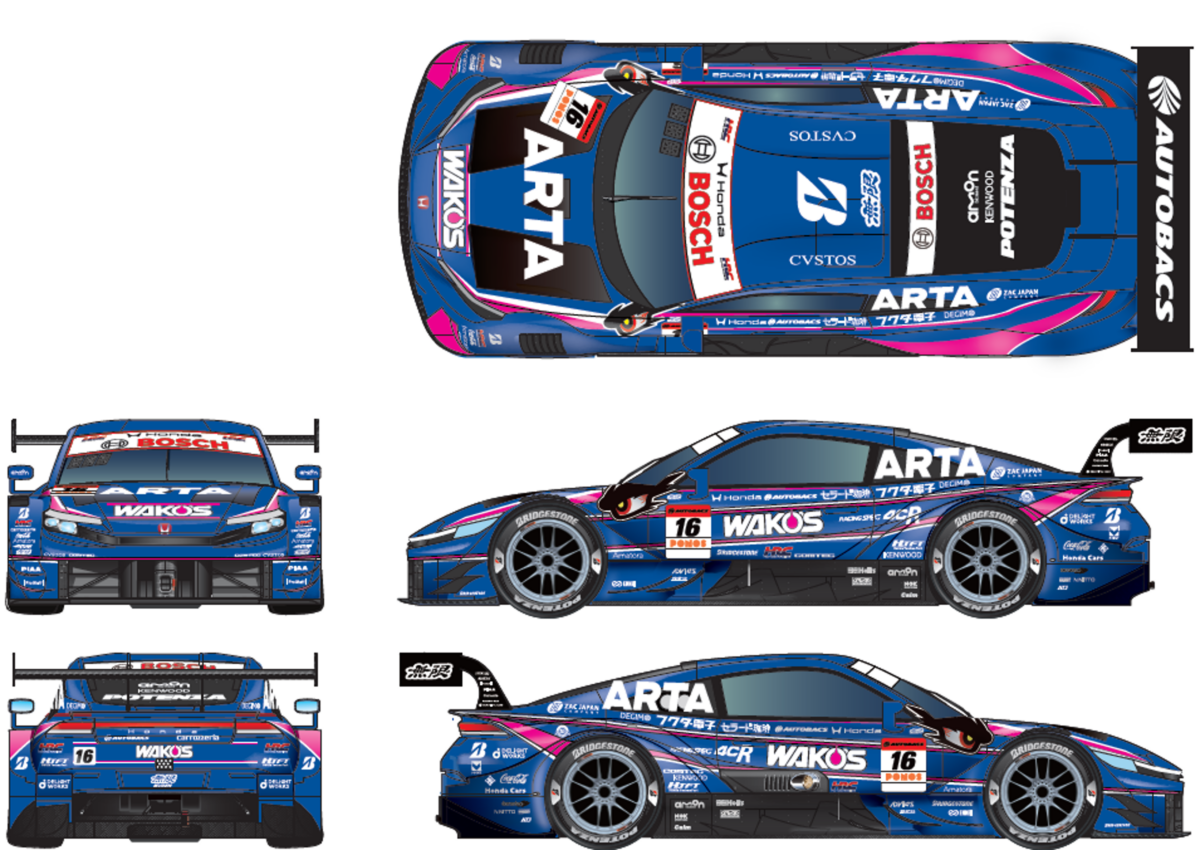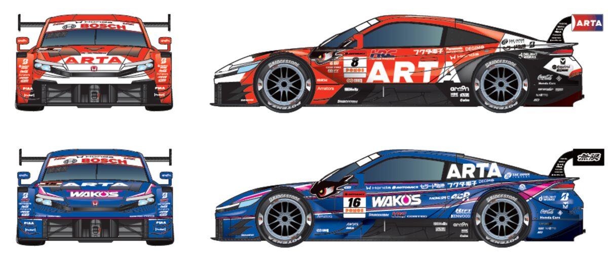 同シーズンでは、ベース車両をPRELUDE-GTへ刷新し、8号車はARTAオレンジ、16号車はWAKO’Sブルーを基調としたデザインを採用した。両車には無限の象徴である「コマンダーアイ」を配置し、チームの挑戦姿勢を表現する。新カラーリングは2026年4月11日・12日に岡山国際サーキットで開催される開幕戦で初披露される予定だ。