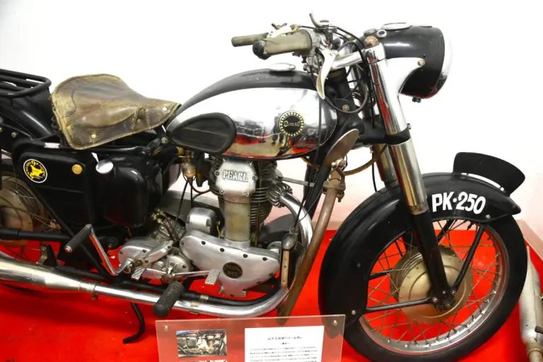 特筆すべきは、山下製作所の「パール号KTT」です。1956年にわずか10台のみ生産されたこの車両は、北海道への輸送途中に船が沈没したという逸話を持つ“幻の単車”。そのうちの一台が、奇跡的にこの館で今も生きています。
